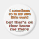 Às vezes vou ao meu pequeno mundo, mas está bem, eles me conhecem lá. Engraçado e bobo dizendo em diferentes T-Shirts, camisas e produtos.