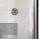 Add a touch of festive charm to your fridge with this lovely round magnet! It features a vibrant, stylized horse galloping through cheerful, Mexican-inspired patterns. This magnet adds a fun touch to any metallic surface.