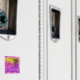 Sol brilhante e palmeira brilhando em Miami Flórida em amarelo, pinks e roxo, que chama atenção.