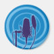 Silhueta de microfone estúdio sobre fundo azul.