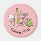 Composição do vinho rosa. Garrafa, vidro, saca-rolhas e uvas. Cor de fundo personalizada. Custom Text.
