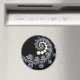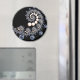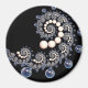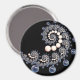 A marfim e as pérolas azuis espiralam dentro de uma espiral sobre um fundo preto.