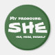 Avise às pessoas que os pronomes certos para usar para você são ela, ela, ela e ela mesma. (Sinta-se livre para mudar as cores personalizando o produto. Você pode alterar a cor do plano de fundo clicando em "editar" e em "plano de fundo". Escolhi verde porque é uma cor neutra do ponto de vista do gênero e nas bandeiras do gênero e da neutrois.)