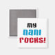 Minhas camisetas Nani Rocks, cartões, adesivos, sacos de tote, ímãs, botões e outros itens com um design de texto preto, azul e vermelho. Estes itens do My Nani Rocks são uma forma excelente de mostrar o seu amor pelo seu nani especial!