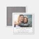 Ímã de Salvar Data Minimalista Moderno Foto Preto Branco apresenta um anúncio de casamento de salvar data moderno e simples com sua foto favorita no topo e o texto "Salvar Data" em tipografia moderna e negrito. Abaixo, adicione seus nomes, local do casamento, data do casamento e informações adicionais, como "convite formal a seguir". Criado por Evco Studio www.zazzle.com/store/evcostudio