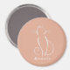 Gato branco minimalista num ímã cor-de-rosa. Personalize este ímã elegante com o seu nome.