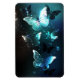 Noite de manhã borboletas brilhantes sobre fundo abstrato preto.