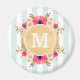 Magnet com padrão listrado de menta, flores cor-de-água rosa e monograma personalizado de folha de ouro falsa.