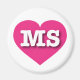 Este ímã apresenta um coração cor-de-rosa-quente vibrante contendo as letras maiúsculas, brancas e em negrito MS, a abreviação oficial para Mississippi, o estado magnólia.