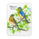 Um ímã decorado com pássaros azuis machos e fêmeas numa árvore florescente do espinho ilustrada com tinta e aquarela. Inspirado pelo pássaro e flor estadual do Missouri. Você pode remover ou editar o texto para ajustado das suas necessidades.