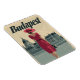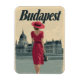 Este cartão postal romântico mostra a grandeza do edifício do Parlamento de Budapeste, com uma na moda num vestido vermelho que se estende nos anos 50 e que está em primeiro plano. Ao longo do rio Danúbio, a cena é banhada em tons suaves e nostálgicos que evocam o charme da viagem europeia do século médio. Uma peça perfeita para amantes da moda antiga, da arquitetura, e da arte clássica do cartão postal.