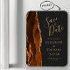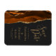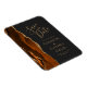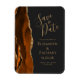 Esta elegante imã salve a data moderna apresenta uma cor de água laranja queimada, borda agitada, aparada com falso brilho dourado. Personalize facilmente o texto dourado em um fundo preto e escuro.