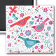 Pássaros aquosos modernos e contemporâneos e padrão de flores em verde-lacrimogêneo, rosa magenta e vermelho sobre fundo branco. Arte original de Nic Squirrell.