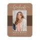 Lindo ímã de 1 anúncio da graduação em fotos. Apresentando um texto moderno com uma elegante escrita caligráfica em tons de branco em tons de terra de terracota leve e mocha. Para ver mais itens como este, visite minha loja aqui em "www.Zazzle.com/LakeViewCardCo". Obrigados