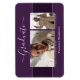 Belo ímã de 2 fotos de graduação. Apresentando texto moderno com um roteiro elegante de caligrafia em branco em roxo. Para ver mais itens como este, visite minha loja aqui em "www.Zazzle.com/LakeViewCardCo". Obrigados