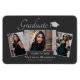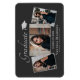 Lindo ímã de 3 fotos de graduação. Apresentando texto moderno com um roteiro elegante de caligrafia em cinzas prateadas em cinzas de platina escura. Para ver mais itens como este, visite minha loja aqui em "www.Zazzle.com/LakeViewCardCo". Obrigados