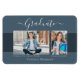 Belo ímã de 2 fotos de graduação. Apresentando texto moderno com um roteiro elegante de caligrafia em cinzas leves em tons normais de azul empoeirado. Para ver mais itens como este, visite minha loja aqui em "www.Zazzle.com/LakeViewCardCo". Obrigados