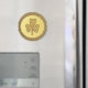 Este incrível ímã apresenta uma imagem gráfica de uma moeda de ouro com dois tons de ouro. O círculo externo tem uma textura áspera. Dentro, o círculo interno da moeda é uma pedra-do-ouro texturizada composta por três folhas e um caule.