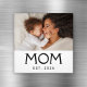 Mom Established Photo Gift - Minimal Elegant Black Classic Mom Typography - Give Mom the recognition she deserves with this fun black and white photo magnet. The word "MOM" appears in classic black typography on a white background, with the words "EST." ("Established") and the year below. Easily replace the sample photo with your favorite mom and baby photo. Edit the text to display one or more birth dates. Other short variants of "mom," such as "mum" or "mama," can be substituted. Makes a great gift for Mother's Day or Mom's birthday!