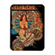 Publicidade de vinhetas. Nesta poster de férias luxuosas na costa mediterrânica, Mucha combina elementos figurativos realistas com decoração muito estilizada. A figura feminina pálida no centro da poster segura as mãos em seu rosto em maravilha contra um pano de fundo do mar azul e uma costa montanhosa. Ao redor do corpo, ela se senta com um elaborado padrão floral composto por pedúnculos curvantes de lilás, hidrangea, dianthus e violeta.