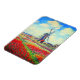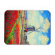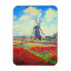 Magnet com pintura de Claude Monet em flores e moinhos de vento. Lindos e coloridos campos de tulipas vermelhas, cor-de-rosa e amarelas ao lado de um moinho de vento e casa na Holanda. Um presente de Monet excelente para fãs do impressionismo e da arte francesa.