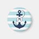 Listras náuticas aqua claras com âncora azul marinho e monograma.