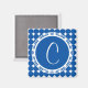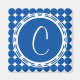 Os pontos azuis nos trimestres próximos criam um padrão secundário de estrelas brancas. Um grande círculo azul é rodeado por linhas brancas, enquanto um solteiro inicial branco agarra o centro.