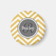 Padrão ziguezague branco e amarelo monograma com nome personalizado. Design geométrica moderna, bonita, giro, moderna, apresentando uma placa de nome em círculo de cinza que é facilmente personalizada com seu primeiro nome e a letra inicial do sobrenome.