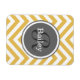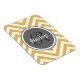 Padrão ziguezague branco e amarelo monograma com nome personalizado. Design geométrica moderna, bonita, giro, moderna, apresentando uma placa de nome em círculo de cinza que é facilmente personalizada com seu primeiro nome e a letra inicial do sobrenome.