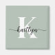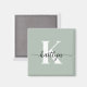 Este simples e elegante ímã verde quadrado de 2" com seu primeiro nome em uma letra de texto de tendência em preto e seu primeiro inicial em uma fonte moderna de boné em branco é perfeito para você. É na moda e moda e, no entanto, muito clássico. Ficará fabuloso no seu armário, geladeira, escrivaninha.