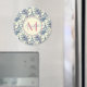 Este ímã redondo pré-filmado apresenta um belo padrão de torre Eiffel parisiense em tons macios de rosa, azul e creme. Personalize o monograma com sua escolha inicial. Divertido para sacos de presentes.