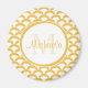 Dê ao seu estilo uma borda moderna com este ímã redondo padrão gráfico amarelo e branco em escala de peixes, que você pode personalizar adicionando seu nome e monograma iniciais. Este design de padrão geométrico de tendência é ousado, mas na moda.