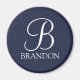 Íman Monograma e Nome de Script Personalizado Azul-mari