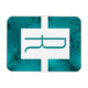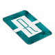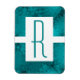 Um olhar clássico com um toque moderno. Um monograma teal dentro de um retângulo branco contra um fundo teal gravado.