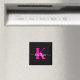 Este simples e elegante ímã preto de 2" quadrado com seu primeiro nome em uma letra de script de tendência em branco e seu primeiro início em uma fonte moderna em rosa-quente é perfeito para você. É na moda e moda e, no entanto, muito clássico. Ficará fabuloso no seu armário, geladeira, escrivaninha.