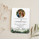 Uma elegante Imã salve a data de aniversário de casamento com montanhas de aquarelas e pinheiros e uma foto especial que você pode personalizar com seus detalhes.