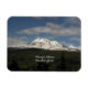 Um enorme pico de montanha paira sobre uma vasta floresta de árvores escuras e verdes. No céu azul, nuvens flutuam sobre a montanha e em frente ao pico. Esta montanha é o Monte Adams, também conhecido como Pahto ou Klickitat. É um vulcão latente nas Montanhas Cascata do Estado de Washington. Traga esta paisagem majestosa do pacífico noroeste para sua casa com este ímã.