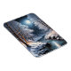 Uma bela lua de cheio sentada sobre um riacho no inverno enquanto a neve cai suavemente.
