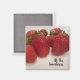 Imagem deliciosa e esfarrapada de morangos frescos e próximos estão em casa na geladeira. Morangos vermelhos com caules verdes isolados em prato branco. Frutas maduras frescas, com detalhes de textura e sementes visíveis. Aproveite toda a doçura!