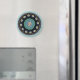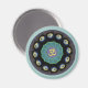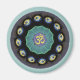 Um desenho abstrato criado das formas e cores nas asas de uma Rota da Seda Gigante, esta mandala tem no seu centro, o símbolo Om Budista, que é frequentemente interpretado como representando a vibração essencial do universo. Em aqua, lavanda e amarelo.