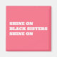 Este imã motivacional afro-americano (preto) tem 'Brilhando, irmãs pretas, brilhando' escrito em branco sobre fundo rosa. Esta mensagem positiva e estimulante visa as mulheres negras e dá positividade a qualquer espaço em que se encontrem. Uma mensagem encorajadora e inspiradora para ficar na sua geladeira e dar-lhe uma olhada de manhã.