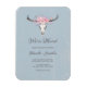 Anuncie que se mudou com este ímã de comunicação apressado. Este design boho apresenta um crânio de vaca desenhado à mão com um vestido cor-de-rosa pincelado de cabeça floral de rosas delicadas sobre um fundo de madeira cinza azul e de couro. Parabéns pela sua nova casa! Desenhado pela artista ©Susan Coffey. Desenhado pela artista ©Susan Coffey.