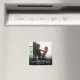 Esta foto de script moderna com ímã apresenta sua foto especial sobreposta com uma mudança de data em script acima de seus nomes e mensagem em tipografia branca.