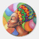 Retrato estilizado de mulher africana, vestida e cercada por cores brilhantes do Design de Tecido de cera tradicional. Roteiro original de direitos autorais BluedarkArt.