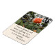 Este elegante ímã mostra um belo rosa e folhas cobertas por gotas de chuva de um chá primavera. Abaixo da rosa está o verso Bíblia Proverbs 31:30 que diz, "Charme é enganador, e beleza é fugaz; mas uma mulher que teme que o Senhor seja elogiado."