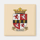 The shield is quartered in classic heraldic style, displaying rampant red and silver lions, long-standing symbols of courage, guardianship, and honour. Across the centre runs a bold black band bearing three golden sheaves of wheat, representing prosperity, abundance, and the deep agricultural roots of Irish life. Above the shield rests an ornate golden crown, signifying leadership and ancestral prestige.