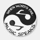 O símbolo yin yang com notas musicais e a mensagem, "Quando as palavras falham...música fala"