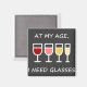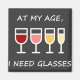 Magneta engraçada dizendo "Na minha idade, preciso de óculos" Faz um presente de excelente para seu bebedor de vinho favorito - ou apenas guarde para você mesmo.