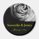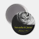 Um rosa de atrativo floresce no ímã de casamento preto e branco personalizado com seus nomes e data.