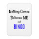 "Nada vem entre mim e BINGO" é o ditado perfeito para o ávido jogador. Adicione este ímã à sua cozinha ou escritório. Fundo branco com letras negras. A palavra BINGO em azul negrito.